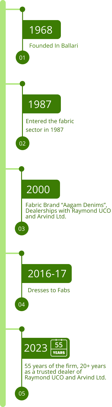 Welcome to Lokseva, the passion for denim started in 1968 with a garment manufacturing unit strategically located in the textile hub of south india-city named Ballari. In 1987, Lokseva entered into the fabric sector with a vision to mark a strong presence in the B2B fashion industry. Lokseva manufactures high quality Denim bottom-wear fabric under the brand name “Aagam Denims” and also has served as a well-known and trusted Dealer of Arvind Ltd and Raymond UCO for 20+ years now.